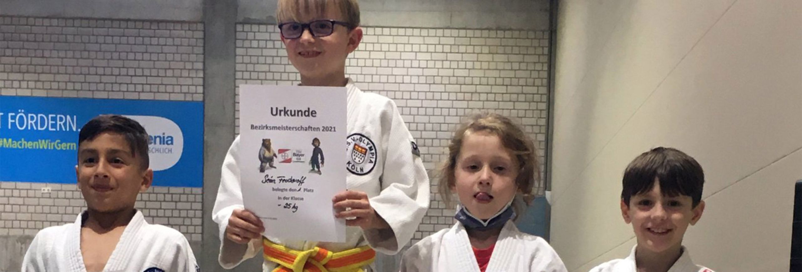 Raphael Lücker (-25) kg konnte seinen Gegner Sergej Stenko von der Judoschule Bonn bereits nach wenigen Sekunden mit Ippon durch Seoi-nage besiegen. Im zweiten Kampf konnte er seine Technik nicht durchsetzen und musste sich nach 2 Waza-ari Wertungen gegen Emlil Koch vom ESV Olympia Köln geschlagen geben. Somit wurde er 2. im Pool und kämpfte gegen den zweitplatzierten aus Pool B: Daryan Mohammed vom Shiai Judoteam Köln. Auch hier ging Raphael motiviert in den Kampf, hatte gute Ansätze und unterlag am Ende im Haltegriff. Am Ende belegt er einen verdienten 3. Platz auf seinem ersten Bezirksturnier.